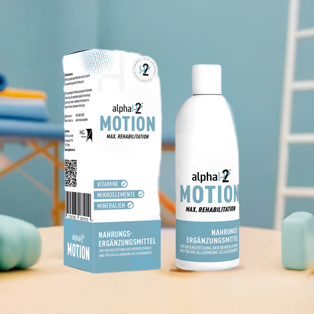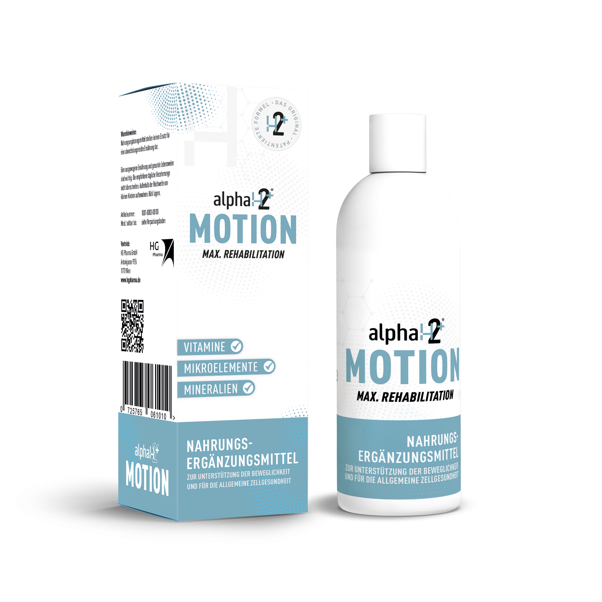alphaH2+® MOTION beinhaltet zusätzlich Vitamine, Calcium und botanische Extrakte und ist damit auf die Bedürfnisse des gesamten Bewegungsapparates angepasst.  Körperliche Leistungsfähigkeit wird verbessert, oxidativer Stress reguliert und die körpereigene Reparaturvorgänge unterstützt.